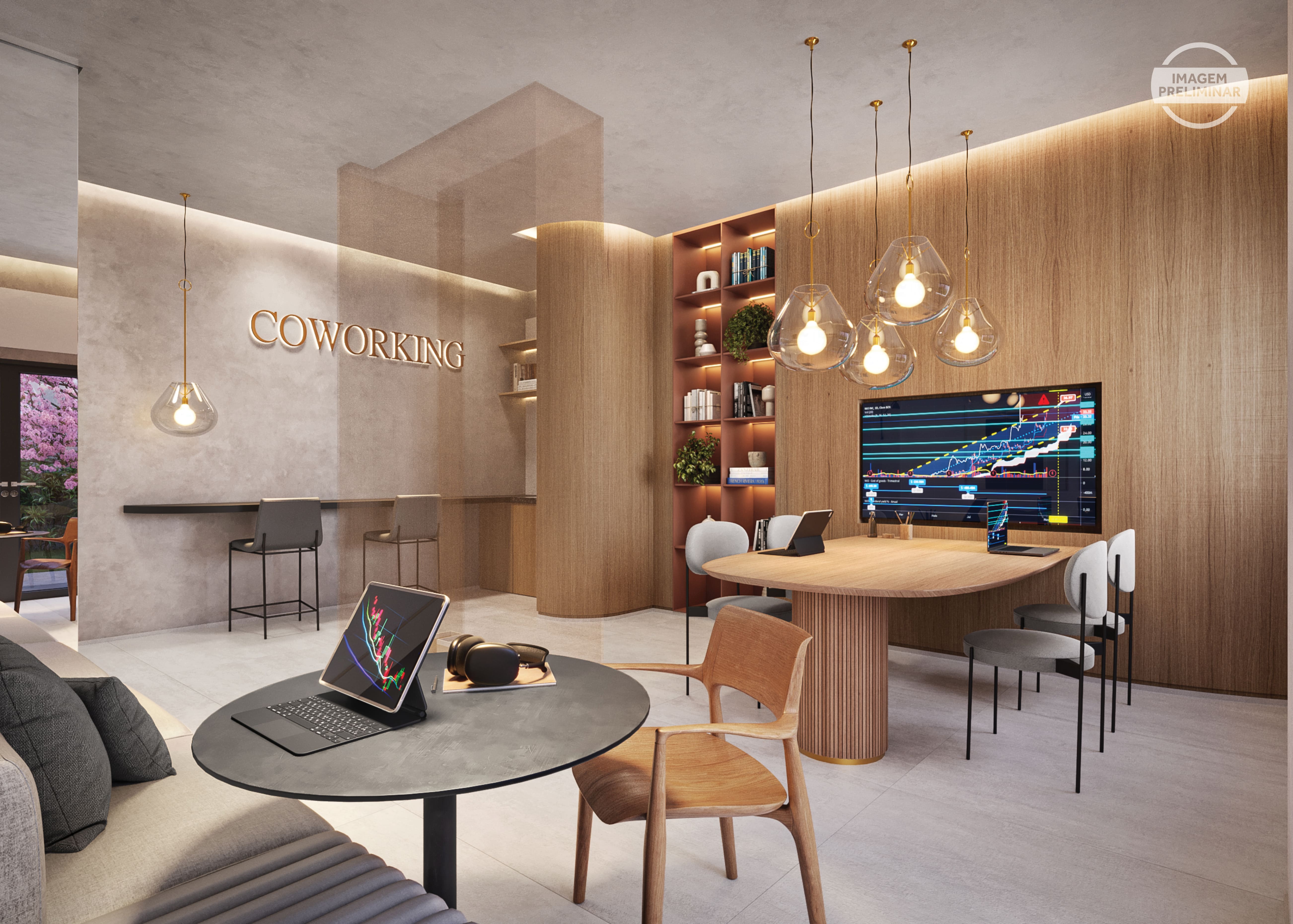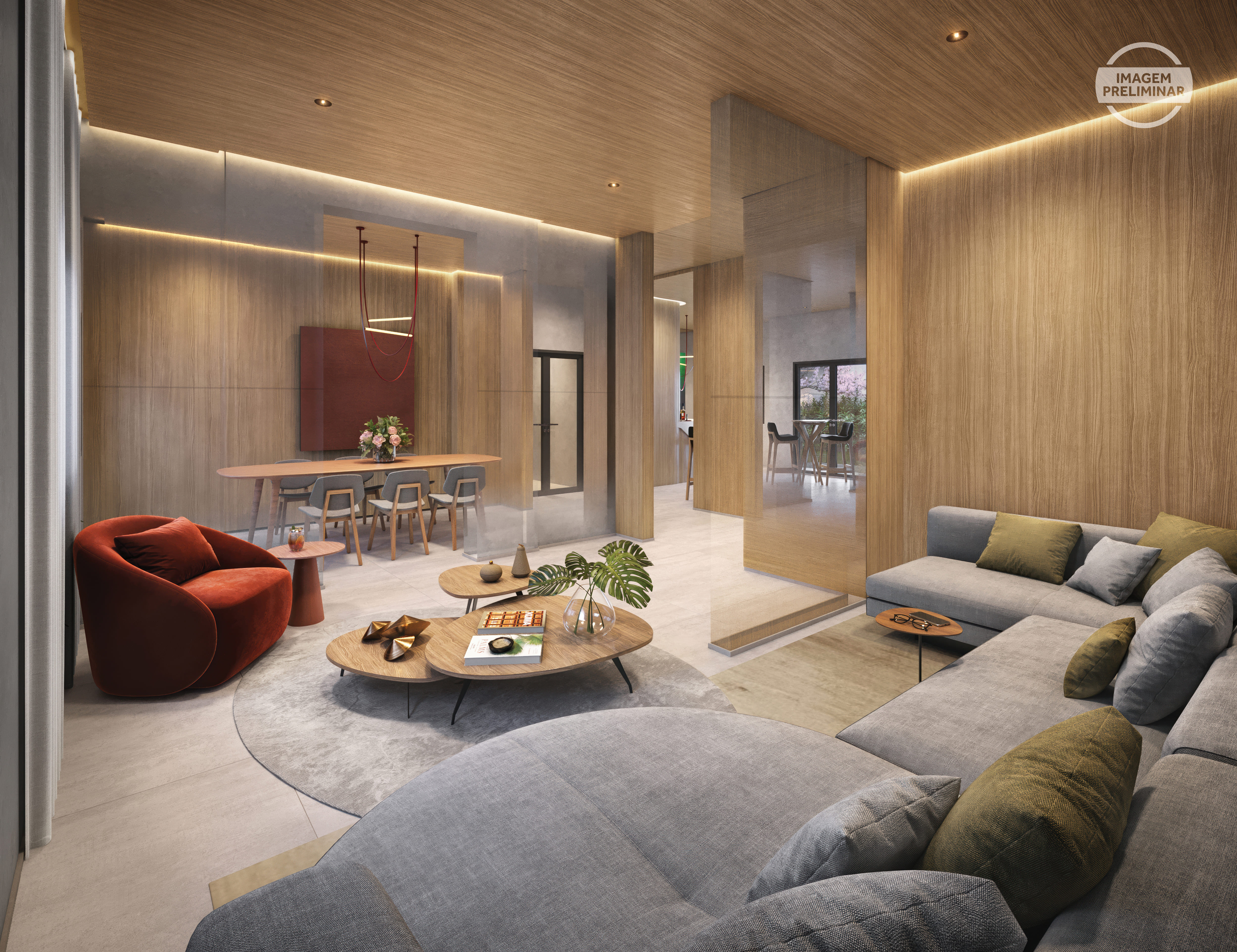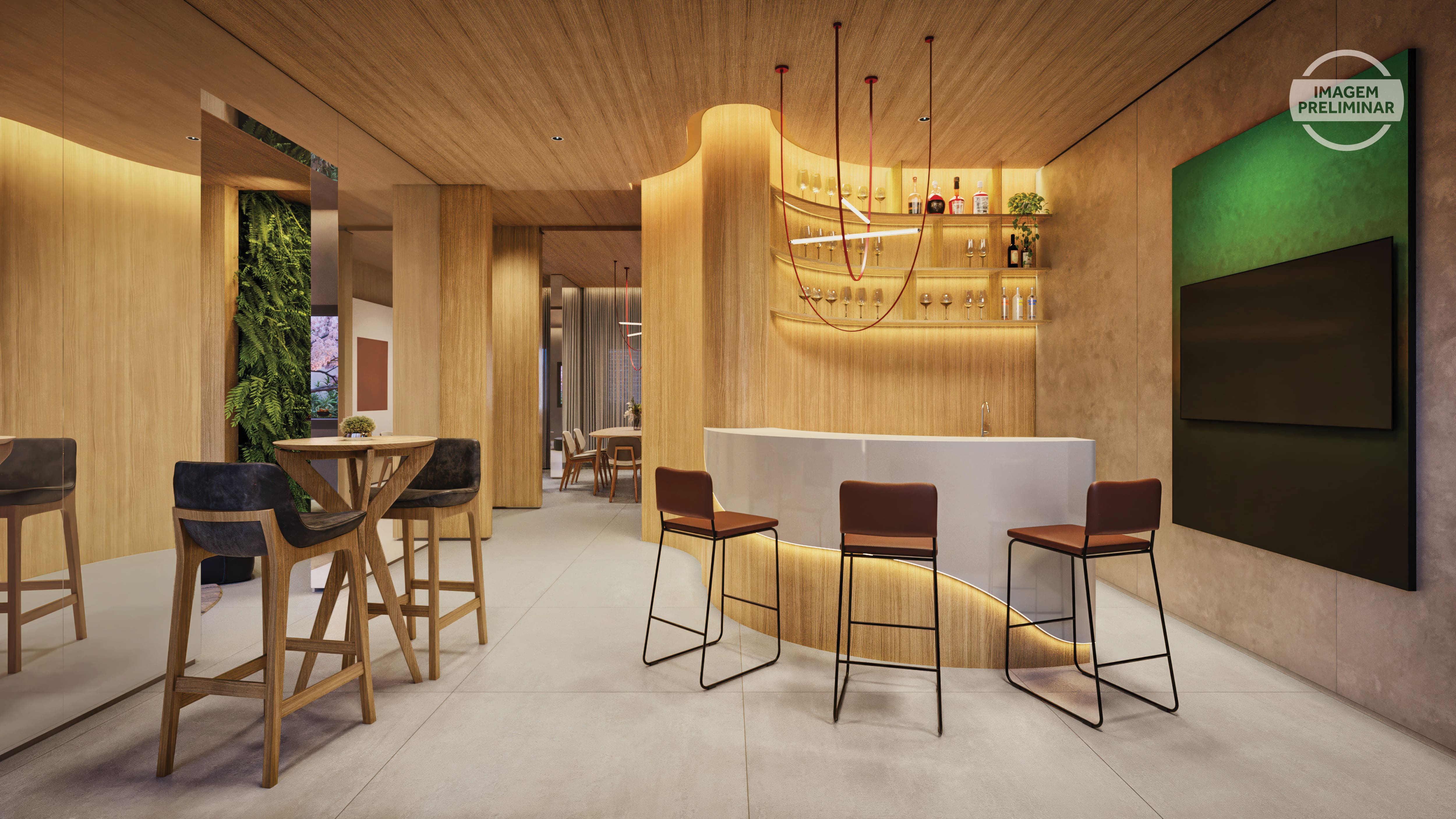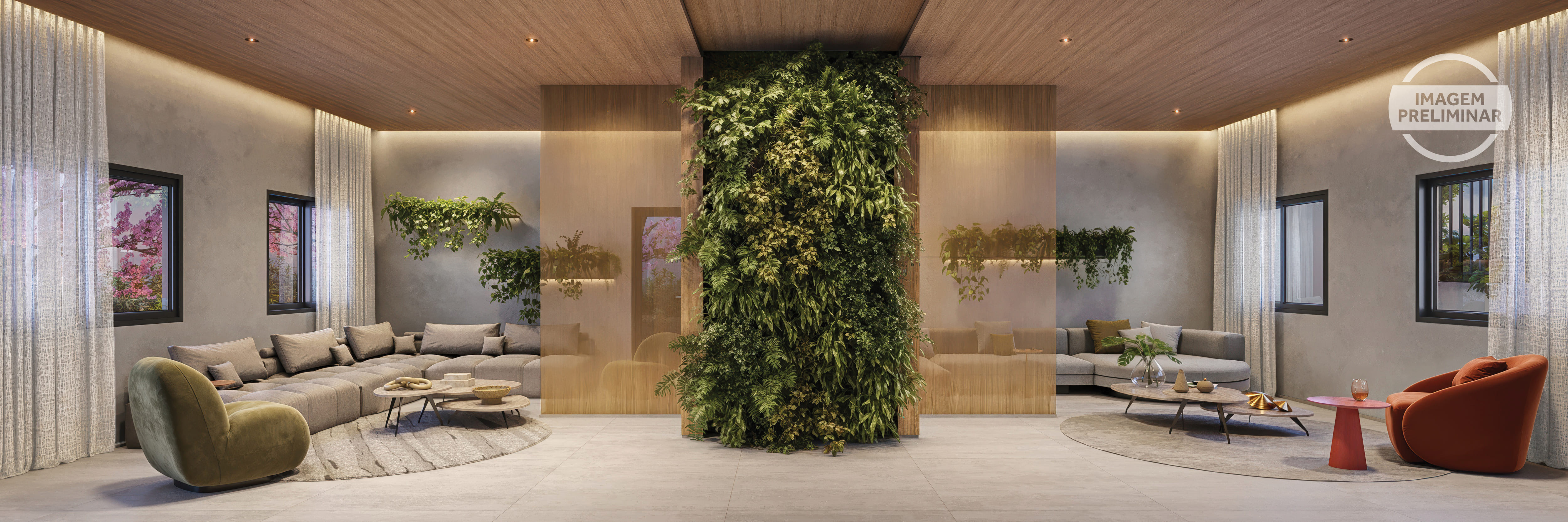 Todos os direitos reservados. O empreendimento somente será comercializado após o registro de incorporação conforme a lei n° 4.591/64, junto ao cartório de imóveis competente. As informações são preliminares e sujeitas a alteração sem aviso prévio. Os acabamentos, mobiliário, eletrodomésticos e demais itens do apartamento decorado e das perspectivas não fazem parte do Memorial Descritivo. A vegetação que compõe o paisagismo retratado nas perspectivas é meramente ilustrativa e apresenta porte adulto de referência. Na entrega do empreendimento, essa vegetação poderá apresentar diferenças de tamanho e porte, mas estará de acordo com o projeto paisagístico e em conformidade com as aprovações ambientais. A vista apresentada nas imagens é meramente elucidativa, não sendo a fotografia exata do local.